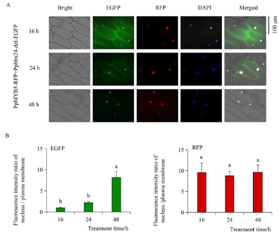 PpMYB5参与Ppbbx24-del从细胞膜到细胞核的转运过程