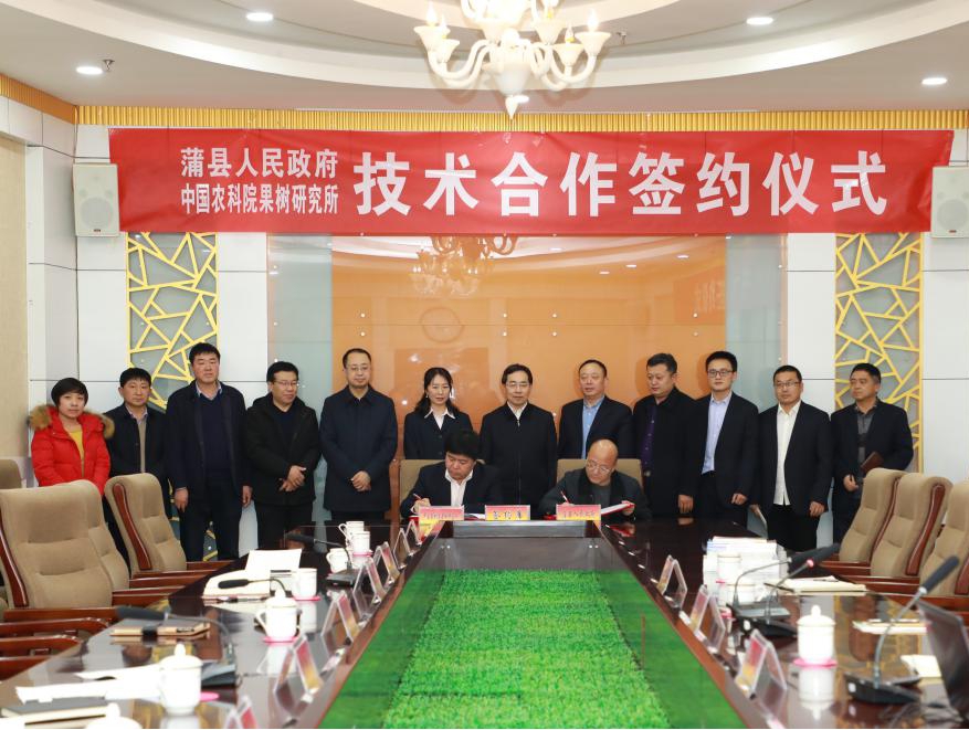 为进一步强化创新与创业的双轮驱动机制,1月16日下午,果树研究所与蒲县人民政府在山西蒲县成功举行了技术合作签约仪式。果树所党委副书记、纪委书记李建才、果品采后技术研究中心主任王文辉、蒲县县委书记薛凤奎、县长杨晓舟、副县长张金龙等人出席签约仪式并致辞。
