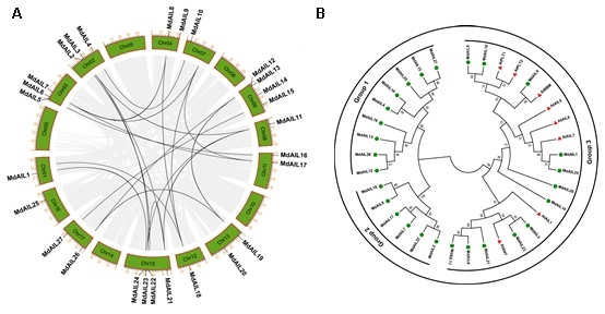 实验研究通过对苹果中的AIL基因进行全基因组家族分析,从苹果基因组中鉴定得到27个AIL基因家族成员,通过生物信息学分析,发现其广泛参与苹果生长发育过程。进一步分析发现,MdAIL1MdAIL20MdAIL23等基因可能在苹果不定芽再生过程中发挥重要调控作用。该项研究为深入解析苹果AIL家族基因的生物学功能、提高苹果的不定芽再生效率提供理论依据,也为进一步开展苹果分子育种奠定基础。